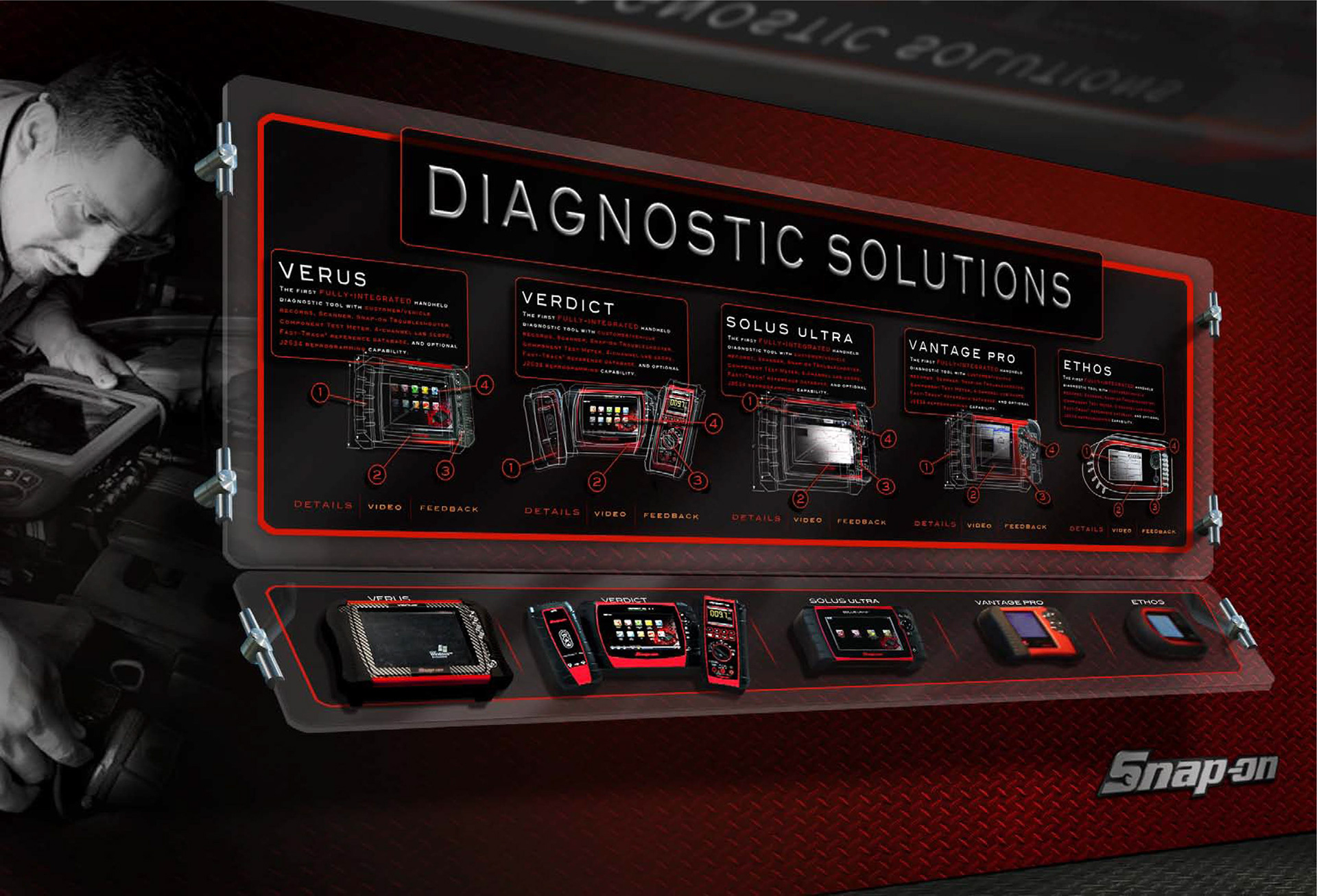 Touch screen technology was featured above the actual tool. The screens highlighted three specific characteristics of the tool as well as provided the participant a 360˚ view.